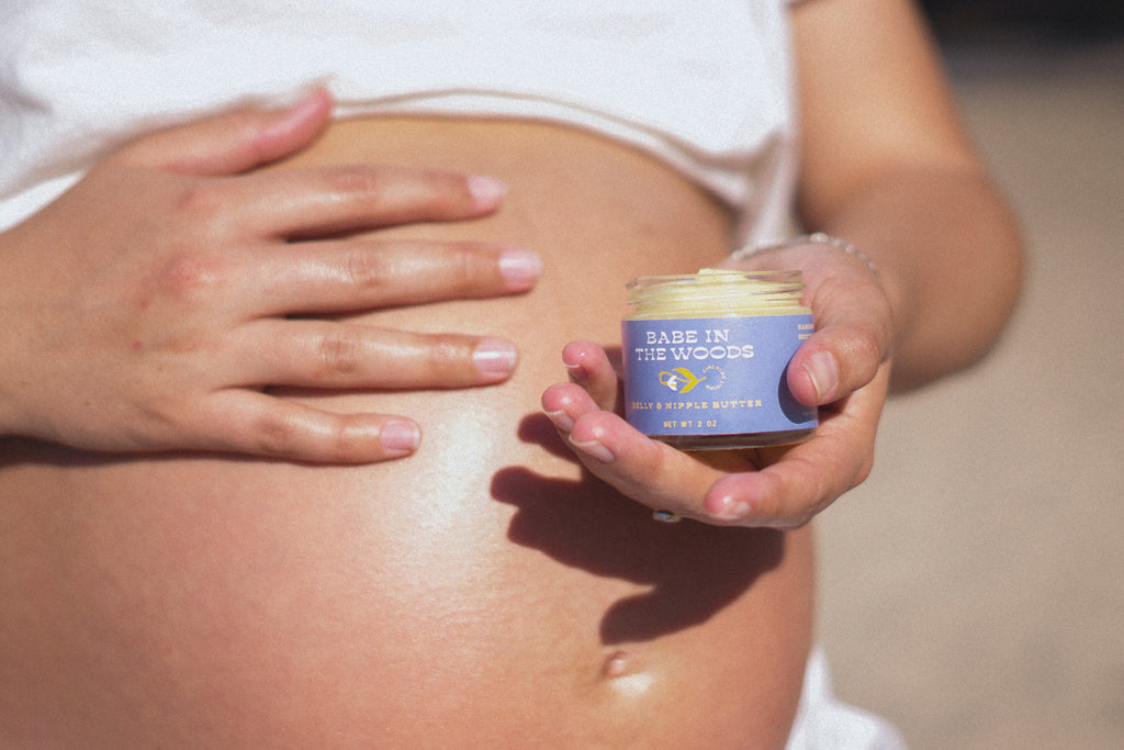 A nourishing and soothing body butter for pregnant bellies and sore, cracked nipples.